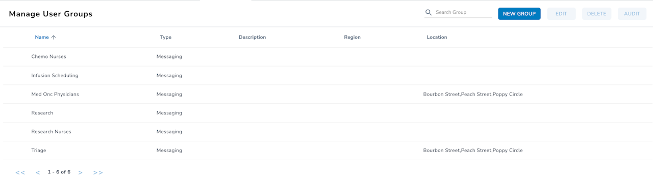 User Groups on the Admin menu allows you to create messaging groups using Batch Selection and Manual Selection. Edit, Delete or view the Audit History of user groups.